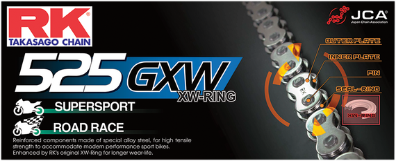 Caracteristicas: Advanced design XW-ring provides better sealing to extend wear life up to 100 percent XW-ring chains are the best high-speed, extreme heat performance chains available today