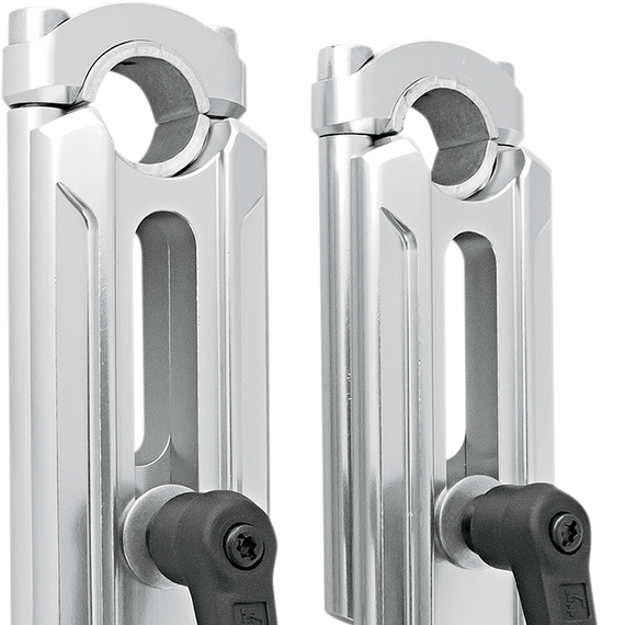 • Allow you to clamp a stock 7/8" diameter handlebar, or you can remove the 7/8" reducers and then clamp a 1-1/8" oversize aluminum bar - reducers lock into risers to ensure no slippage between components and serrated teeth ensure maximum gripping power on the handlebar