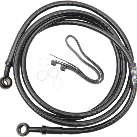 Caracteristicas: Using all stock mounting locations and hardware, simply route your hose and attach the banjo at the master cylinder The banjo is incorporated at the caliper end of the hose assembly Features Russell's exclusive 360° swivel banjo system Engineered using two O-rings for a positive seal All lines have a 3/8" 90° banjo at the caliper end Makes the rotation alignment hassle free