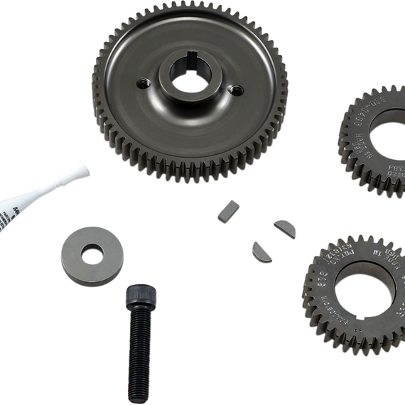 Caracteristicas: A four-gear set is required for gear-driven cams that do not come with secondary cam gears; includes two secondary cam gears, outer cam drive gear, outer pinion drive gear and mounting hardware Due to the inherent characteristics of gear drives, you may experience more valve train noise with gear driven cams; oversized and undersized gears are available to help achieve correct gear lash Made in the U.S.A. It is the installer's responsibility to check all clearances and follow all procedures in the S&S instructions and Harley-Davidson manual.