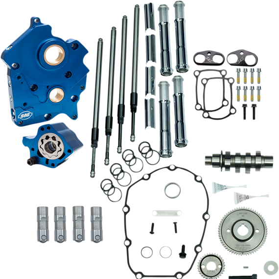 Caracteristicas: Camshaft gear drive kits increase valve timing accuracy by eliminating timing chain lash and loosely-fit stock chain drive Reverses the rear cam's direction of rotation, providing additional operating clearance between cam lobes; as a result, higher cam lifts are possible with the gear drive kit Kits include cams, inner gears, outer drive gears, inner and outer bearings, gasket and instructions Material must be removed from the inner surface of the stock gear cover to install S&S gear drive cams A hydraulic press and other professional-level tools are required to install these kits Cam bearings and gaskets must be replaced when installing new cams Kits require high-performance valve springs when installed in 99-04 models. Installer must check coil bind, valve-to-valve clearance and valve-to-piston clearance. Due to the inherent characteristics of gear drives, you may experience more valve train noise. Original equipment specifications Bolt-in cam with stock cam timing Does not require tuning Installer must check coil bind, valve-to-valve clearance and valve-to-piston clearance. Made in the U.S.A.