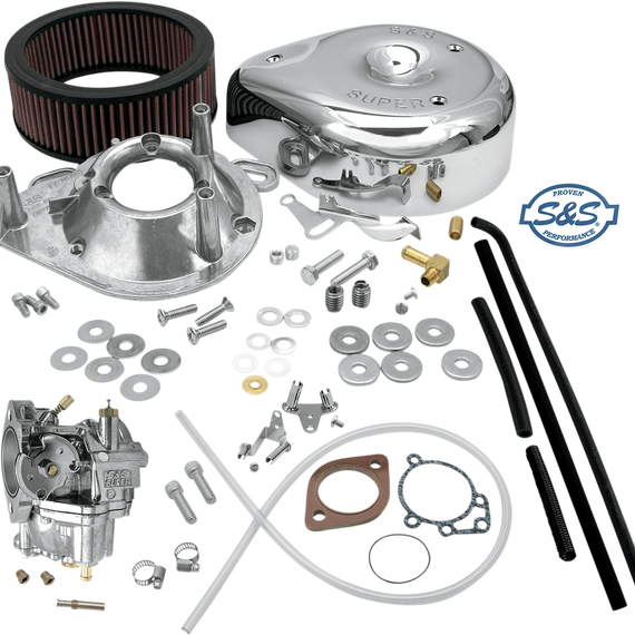 Caracteristicas: Super E has a 1-7/8" throat at the butterfly and a 1-9/16" venturi and is recommended for use on Big Twin or Sportster engines up to 100-cubic-inch If there is a doubt as to which carburetor to use, we suggest the 1-7/8" Super E Each carb kit includes an S&S Super E gas carburetor S&S Super E carburetors require the use of a two-cable, pull open/pull close throttle assembly