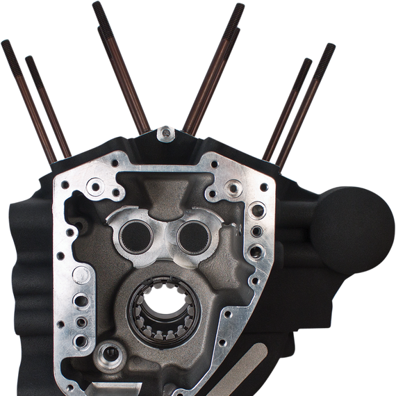 Caracteristicas: Replacement Twin Cam "A" engine cases for stock H-D chassis only (carb and EFI) Feature greater overall strength than stock crankcases Strong, dependable Timken®-style sprocket shaft bearings Clearanced for strokes up to and including 5" All passages between the crankcase cam support plate are O-ring sealed Compatible with most stock components Cam chest has clearance for up to .675" lift cams Include S&S crankcase breather reed valve designed to eliminate oil carry-over and oil scavenging problems Rear motor mount bolts directly to the stock transmission; fully compatible with the stock primary, charging system, and other stock components Made in the U.S.A. This project requires a skilled technician. It is the responsibility of the person assembling the parts to check all clearances and assembly specifications.