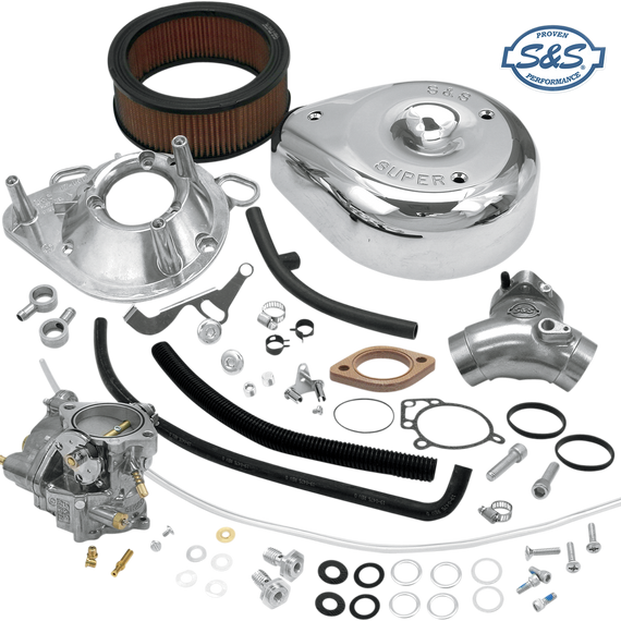 Caracteristicas: Super E has a 1-7/8" throat at the butterfly and a 1-9/16" venturi and is recommended for use on Big Twin or Sportster engines up to 100-cubic-inch If there is a doubt as to which carburetor to use, we suggest the 1-7/8" Super E Each carb kit includes an S&S Super E gas carburetor S&S Super E carburetors require the use of a two-cable, pull open/pull close throttle assembly