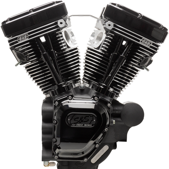 Caracteristicas: High Compression, 10.8:1 for the ultimate in street performance No fuel system or ignition systems included Special head machining fits stock length intake manifolds (S&S manifold size 410) Stock style breathing system; compatible with stock and most performance air cleaners Includes Super Stock heads, crankcases, high flow oil pump, cam cover and easy start cams Specs: displacement 124"; bore 4-1/8"; stroke 4-5/8"; 640 cam; piston type forged flat top Oil line installation kit required. Cylinder heads on T-Series long block engines are 99-05 style. Owners of 06 models will need to purchase a set of 99-05 style, offset intake flanges. Cylinder heads on these engines are specially machined to compensate for the non-stock cylinder length. As a result, they are compatible with manifolds and throttle bodies with stock length intake runners. In addition, the breather vent bolt locations have been adjusted so they are in the stock location, so stock style air cleaner back plates will bolt up to these engines.