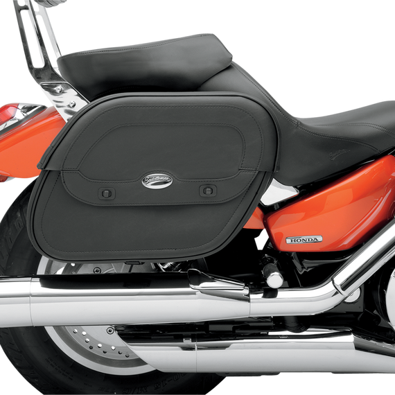 Caracteristicas: Contoured backside allows fitment directly over most shock absorbers, allowing saddlebag options on bikes that were previously limited due to shock and turn signal placement Smooth, clean-styled saddlebags feature easy-open lid with supplemental hook-and-loop and rigid construction Install using zippered yoke for over-the-fender mounting, or hard-mount bags using saddlebag supports (sold separately) Zip-off yoke mounting allows bag to be disconnected without removing the yoke Saddlebag support brackets recommended Measure: 19-1/4" L x 6-3/4" W x 12" H