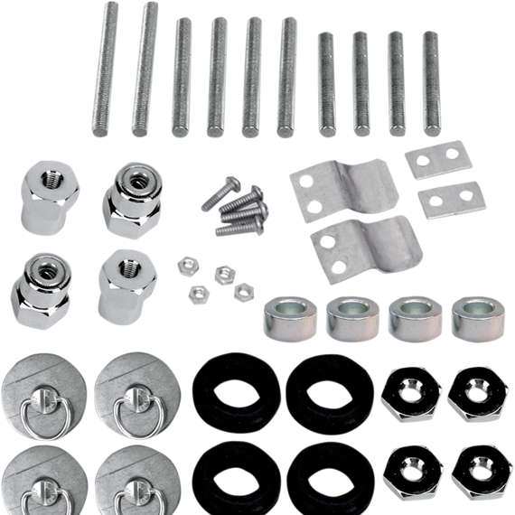 Caracteristicas: Replace fender strut bolts Designed to attach/detach all Saddlemen saddlebags and any rigid-back aftermarket and OEM saddlebags with a twist of the QTL (Quarter Turn Locking) fasteners Each kit includes four docking posts with fasteners, spacers, saddlebag grommets, support clips, nuts/bolts/fastener and instructions Part numbers 3501-0337 and 3501-0338 Requires turn signals to be relocated.