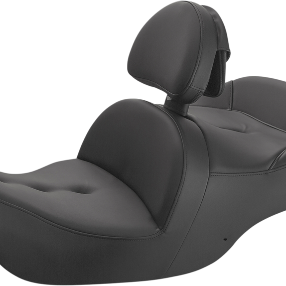 Caracteristicas: Refined split-cushion design separates the seating surface from the lumbar support to reduce tailbone/back pressure for maximum long-range comfort Seat features a combination of progressive density foam and SaddleGel™ inserts for superior driver and passenger comfort Pillowed soft upholstery cover backed by a compliant foam layer under the cover to provide incredible comfort and style Classic styled button-tufted cover Accommodates Saddlemen or Harley-Davidson® backrests (sold separately) Made in the U.S.A.