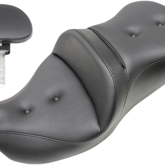 Caracteristicas: Saddlemen's premier touring seat family, engineered and styled to add superb comfort and quality to a Harley-Davidson Trike model Extra plush saddle as compared to a standard Road Sofa so it’s well suited for the extra seat time a Trike rider experiences Specially designed seat pan mates perfectly with the shape of the Trike chassis and does not interfere with the passenger grab rail Exclusive, unique split-cushion design separates the seating surface from the lumbar support, reducing tailbone and back pressure for maximum long-range comfort Seat's styling and function is unaffected by switches or wiring SaddleGel™ in front and rear increases comfort for both driver and passenger Supple SaddleHyde™ offers a combination of comfort, glove-soft leathery feel, weather-resistance and no-maintenance good looks Large and comfortable passenger area prevents sliding forward while offering a thick GEL/Foam cushion for a high degree of comfort Made in the U.S.A.