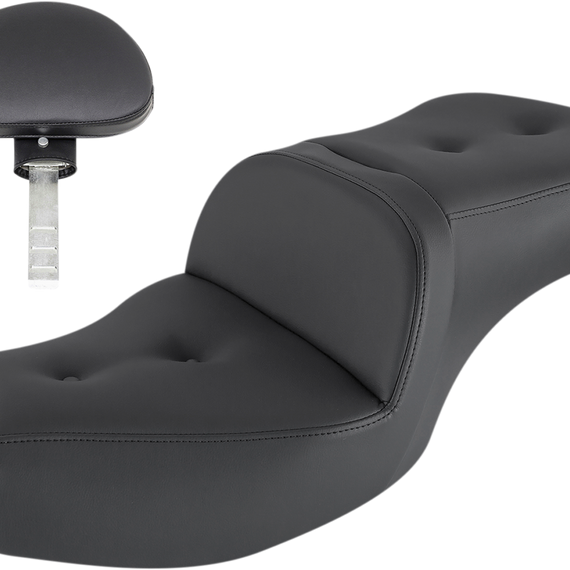 Caracteristicas: Tall Lumbar support and wide driver saddle support he back and legs for superior comfort, while the streamlined nose improves the rider's reach to the ground. Refined split-cushion design maximizes long-rand comfort by separating the seating surface from the lumbar support to reduce tailbone and back pressure. SaddleGel™ in front and rear reduces tailbone pressure and increases circulation and comfort for both driver and passenger. Genuine Pillow-top styling provides a luxurious look and ride. Made with pillow-top inserts and weatherproof, no-maintenance-required Saddlehyde™ Includes a fitted rain cover specially designed to protect seat from water and dirt. Matching passenger backrest/trunk pad completes the custom look (sold separately) Designed and made in the U.S.A.