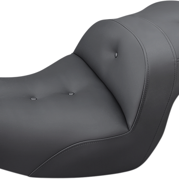 Caracteristicas: Refined split-cushion design separates the seating surface from the lumbar support to reduce tailbone/back pressure for maximum long-range comfort Seat features a combination of progressive density foam and SaddleGel™ inserts for superior driver and passenger comfort Pillowed soft upholstery cover backed by a compliant foam layer under the cover to provide incredible comfort and style Classic styled button-tufted cover Accommodates Saddlemen or Harley-Davidson® backrests (sold separately) Made in the U.S.A.
