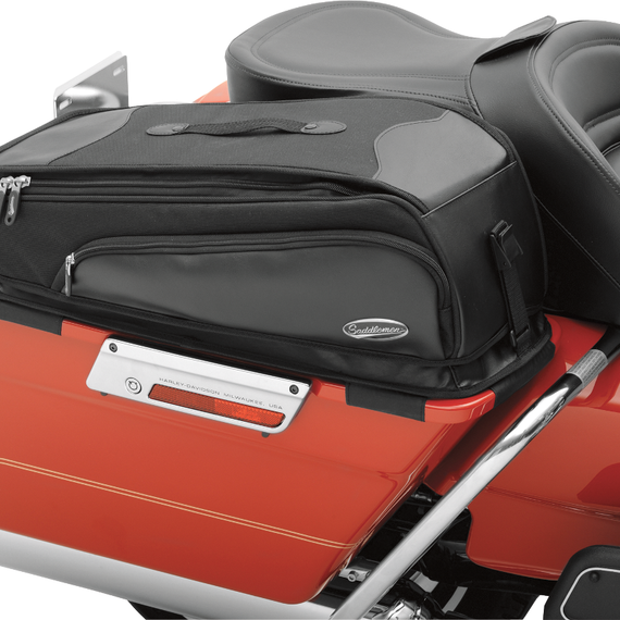 Caracteristicas: Saddlebag chaps protect bagger's saddlebag lids; soft backside is gentle on paint, and the durable, weather-resistant exterior protects against road debris, boot scuffs and other dangers to the expensive hard bags Lid storage bags add more luggage capacity for day trips, are expandable, and will not interfere with saddlebag operation; black SaddleTuff™ 1200-denier ballistic nylon construction blends seamlessly into any bike's design Chaps and bags are easy to install, with no drilling or bike modification necessary Attach securely; easy on, easy off