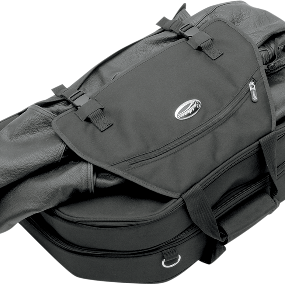 Caracteristicas: Handsome, but rugged luggage bag is designed to fit neatly into King or Chopped Tour-Paks and matches the appearance of Saddlemen's other bagger accessories Multiple storage and organizer sections with a full-side main compartment opening so you have easy access to your stuff even when the luggage bag is in the Tour-Pak® Special shape accommodates Tour-Pak with molded liners, light housings and radio antennas Sturdy grip handle for convenient carrying - included shoulder strap allows you to carry with ease Fully lined with full-circumference, sturdy zippers that permit over-packing but keep the elements away from your cargo Great for trips, overnighters and organizing your gear Simply lift your luggage bag out of the Tour-Pak® to move your cargo easily into the hotel, campground or to unload fast once you're home Measures: 22-1/2" x 7-1/2" x 15"
