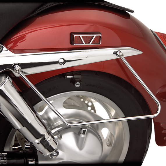 Caracteristicas: Chrome steel supports mount to rear fender bracket with new hardware Holds saddlebags away from brake caliper, swing arms and rear tire No drilling required Additional hardware may be required to install if an aftermarket backrest has been installed.