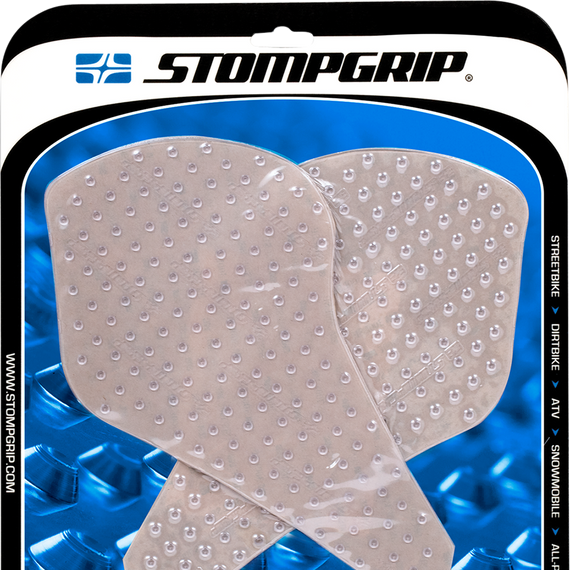 Caracteristicas: Make gripping your ride incredibly easy for increased bike control with more contact between bike and rider Provides more lower body grip and less upper body stress Ultra-clear proprietary elastomer material means paint and graphic remain visible through traction pads Non-abrasive material; designed to wear down and be replaced like a tire Will not wear down leathers as compared to grip tape Pre-molded with rounded edges that resist peeling Super-strong 3M™ peel-and-stick adhesive Made in the U.S.A.