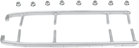 Caracteristicas: The first major breakthrough in wear bar technology since the 1950s Unique corner-carving hourglass design yields better control at speed with no increased steering effort Better tracking on trails - hourglass wear bar shape catches snow from ski sides to make steering more positive Average of 1' - 2' tighter turning radius in soft snow conditions 20% lighter than conventional 1/2" diameter round wear bars Zinc-plated for corrosion resistance Lifetime wear rate is nearly equal to current round and square wear bar types Manufactured by Stud Boy Designed and tested by USI Some models require drilling extra holes in the skis.