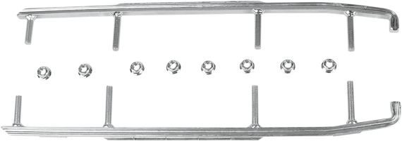 Caracteristicas: The first major breakthrough in wear bar technology since the 1950s Unique corner-carving hourglass design yields better control at speed with no increased steering effort Better tracking on trails - hourglass wear bar shape catches snow from ski sides to make steering more positive Average of 1' - 2' tighter turning radius in soft snow conditions 20% lighter than conventional 1/2" diameter round wear bars Zinc-plated for corrosion resistance Lifetime wear rate is nearly equal to current round and square wear bar types Manufactured by Stud Boy Designed and tested by USI Some models require drilling extra holes in the skis.