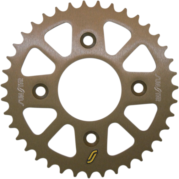 Caracteristicas: Sunstar is the largest OEM and aftermarket supplier of motorcycle and ARV sprockets in the manufacturing world for very major Japanese motorcycle builder since 1946 Constructed of high-quality, aerospace grade 7075 T-6 aluminum Computer-designed weight reduction holes for the best combination of lightness, strength, and stability Exclusive tooth-valley design provides 50% better chain contact area for the best power transfer possible Hard anodized coating for added durability and a superb finish Cleaning grooves added at the bottom of tooth area