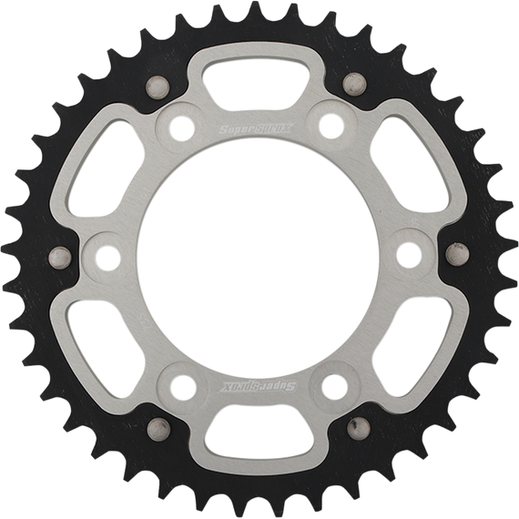 Caracteristicas: Supersprox-Stealth gives you longer system life without compromising weight Steel teeth last 4 times longer than aluminum Pound-for-pound, the strongest sprocket on the market The aluminum core is 70% lighter than steel Forging rivets into the sprockets provide exceptional strength Designed for bikes up to 1400cc in displacement