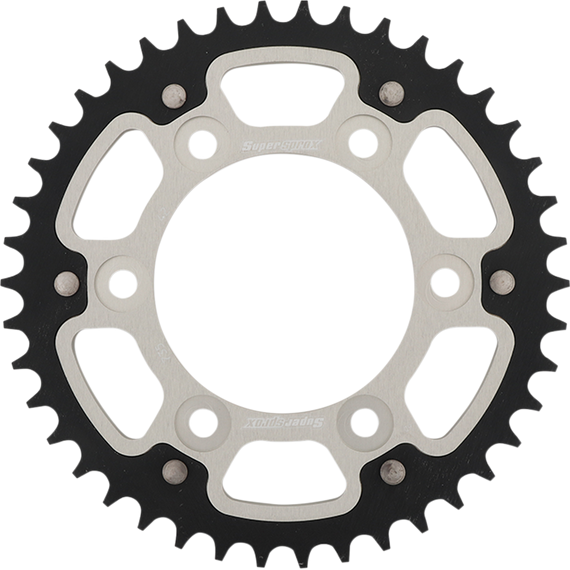 Caracteristicas: Supersprox-Stealth gives you longer system life without compromising weight Steel teeth last 4 times longer than aluminum Pound-for-pound, the strongest sprocket on the market The aluminum core is 70% lighter than steel Forging rivets into the sprockets provide exceptional strength Designed for bikes up to 1400cc in displacement