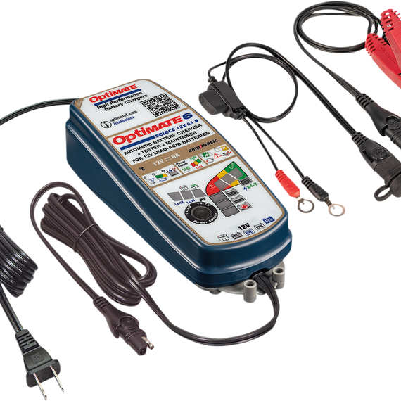 Caracteristicas: Nine-step charger and maintainer for deep cycle 12V batteries that demand accurate temperature controlled charging and safe unsupervised long-term maintenance Voltage selection (14.4V/14.7V) ensures the battery receives charge at the correct voltage Charging amps: 6A @ 14.4V/14.7V; 4A @ 13.6V Ampmatic charge control adjusts current to match battery size Use indoors or outdoors (lowest temperature: -40°F/-40°C) Low-volt start of 0.5V and two-step desulphation recovery Ideal for STD, AGM, gel and deep cycle 12V batteries Input: global (100V-240V 50Hz-60Hz), high-efficiency (CEC listed), fully sealed Weatherproof case with wall mounts Six-foot AC supply lead and six-foot charge lead ending in SAE connector Weatherproof battery lead and standard battery clip set included No risk of overcharging; totally safe for vehicle electronics Sparks suppressed, safe for long-term battery maintenance, automatic shut-down if short-circuited or battery disconnected