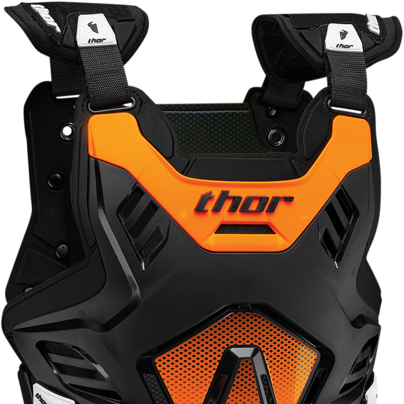Caracteristicas: Adjustable shoulder straps Removable panels Adjustable elastic torso strap with ratcheting buckle closure Lightweight, durable injection-molded panels Strategically placed ventilation ports for maximum cooling Soft Bio-Foam padded chassis for maximum comfort Can be used with Thor number plates and back strap