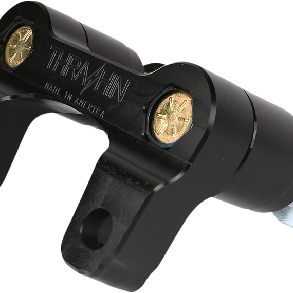Caracteristicas: Thrashin Road Glide Riser Adapter is designed to put Thrashin Risers on the Road Glide Riser adapter has 2 grade 8 bolts dropping down through the triple clamp to the chromoly steel bushing/nut, ensuring the highest strength and quality for maximum control and peace of mind Raises riser mounting location 2-3/8" and sets riser mounting location towards rider 1-5/8" Hardware includes 2 x 7/8" integral chromoly bushing/nut and 1-1/2" long, riser bolts Made in U.S.A Gauge housing will require cutting Fork Lock and Accessory features will not be functionally on stock key switch; You can have your stock key switch mapped by a local dealership to function like the CVO model switch, which lets you use the accessory switch from your hand controls