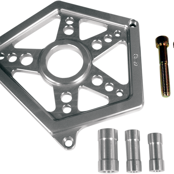 Caracteristicas: Give your bike that "race-tech" appearance with one of these trick sprocket covers CNC-milled out of 6061 T-6 billet aluminum to give you a much lighter cover than the heavy stock cast piece All stand-offs are CNC-machined and mounting hardware is included Made in the U.S.A.