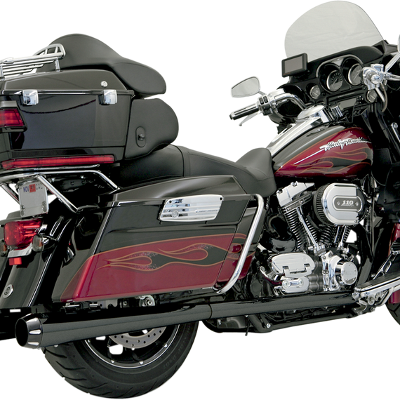 Caracteristicas: Feature equal length 1-3/4" to 1-7/8" step head pipes and 4" mufflers with billet end caps 18 mm O2 port plugs included Include full coverage head pipe heat shields Produce a distinctive "stereo-friendly sound" Made in the U.S.A.
