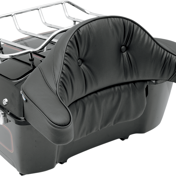 Caracteristicas: Match H-D Tour Box perfectly, and work with all OEM and Drag Specialties seats Urethane-molded foam interior for maximum comfort Automotive-grade vinyl covering matches OEM seat covering Patented process reduces surface temperature by as much as 25°F for a cooler seat, higher durability and longer life over conventional leather or vinyl Include rubber pads and all hardware for mounting Standard length armrest makes for easy on and off of motorcycle Made in the U.S.A.