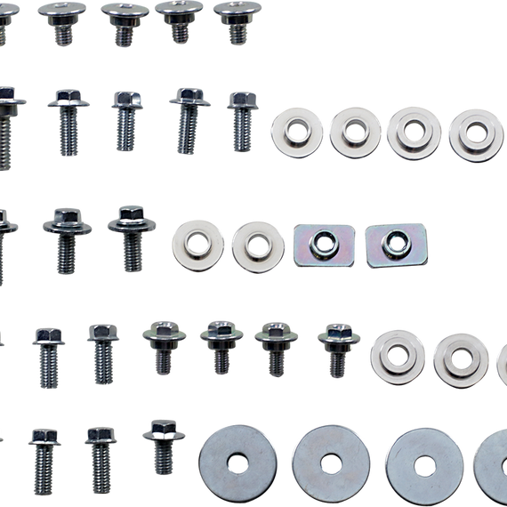 Caracteristicas: Bolt kits designed for Honda Include bolts for front and rear fenders, fork guards, front number plates, seats, side panels and radiator shrouds