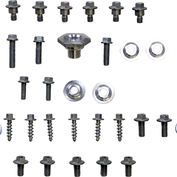 Caracteristicas: Bolt Kits for KTM body plastics Includes bolts for front and rear fenders, fork guards, front number plates, seats, side panels and radiator shrouds