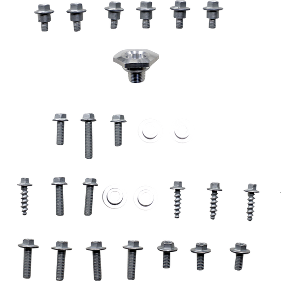Caracteristicas: Bolt Kits for KTM body plastics Includes bolts for front and rear fenders, fork guards, front number plates, seats, side panels and radiator shrouds