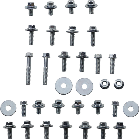 Caracteristicas: Bolt kits for body plastics for Kawasaki Include bolts for front and rear fenders, fork guards, front number plates, seats, side panels and radiator shrouds