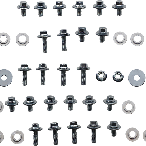 Caracteristicas: Bolt kits for body plastics for Kawasaki Include bolts for front and rear fenders, fork guards, front number plates, seats, side panels and radiator shrouds