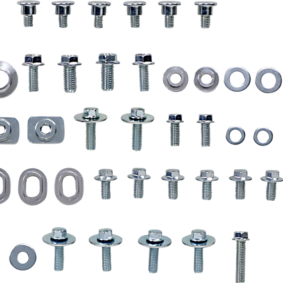 Caracteristicas: Designed for Yamaha Bolt kits for body plastics Include bolts for front and rear fenders, fork guards, front number plates, seats, side panels and radiator shrouds