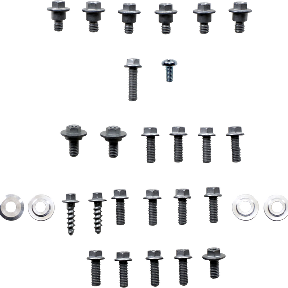 Caracteristicas: Husqvarna bolt kits for body plastics Include bolts for front and rear fenders, fork guards, front number plates, seats, side panels and radiator shrouds