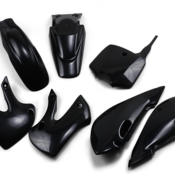 • Body kit includes front and rear fender, radiator covers, side panels and front number plate; OEM matches stock bike color