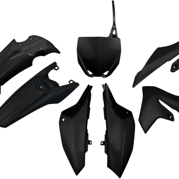 Caracteristicas: Pre-drilled pieces mount easily to stock locations Body kit includes front and rear fender, radiator covers, side panels and front number plate; OEM matches stock bike color Easy bolt-on installation Made in Italy