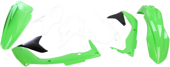 Caracteristicas: Pre-drilled pieces mount easily to stock locations Body kit includes front and rear fender, radiator covers, side panels and front number plate; OEM matches stock bike color Easy bolt-on installation Made in Italy