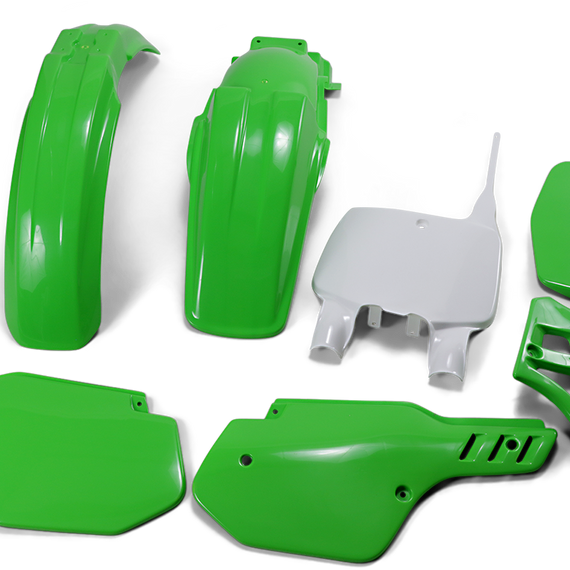Caracteristicas: Pre-drilled pieces mount easily to stock locations Body kit includes front and rear fender, radiator covers, side panels and front number plate; OEM matches stock bike color Easy bolt-on installation Made in Italy