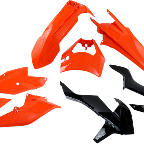 Caracteristicas: Pre-drilled pieces mount easily to stock locations Body kit includes front and rear fender, radiator covers, side panels and front number plate; OEM matches stock bike color Easy bolt-on installation Made in Italy