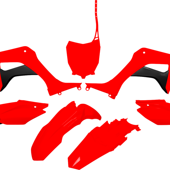 Caracteristicas: Pre-drilled pieces mount easily to stock locations Body kit includes front and rear fender, radiator covers, side panels and front number plate; OEM matches stock bike color Easy bolt-on installation Made in Italy