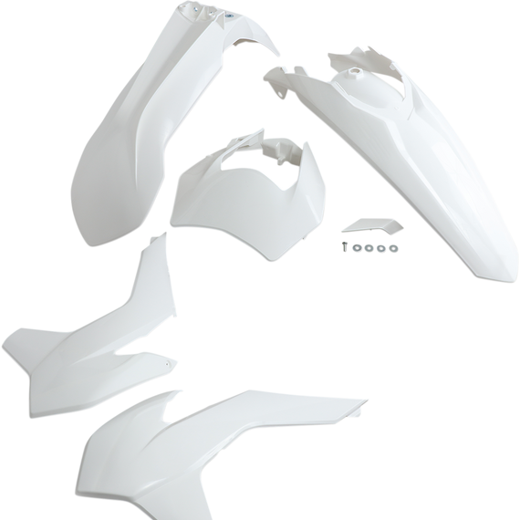 Caracteristicas: Pre-drilled pieces mount easily to stock locations Body kit includes front and rear fender, radiator covers, side panels and front number plate; OEM matches stock bike color Easy bolt-on installation Made in Italy