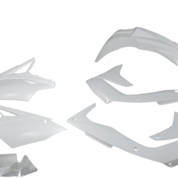 Caracteristicas: Pre-drilled pieces mount easily to stock locations Body kit includes front and rear fender, radiator covers, side panels and front number plate; OEM matches stock bike color Easy bolt-on installation Made in Italy