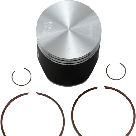 Caracteristicas: All pistons are heat treated with a T-5 hardening and tempering cycle All piston skirts are coated with a high-tech Molybdenum Disulphite coating for faster break-in time and increased piston life Cast piston kits are gravity cast aluminum alloy (not forged) with 18% silicone content, which produces an extremely light but very strong piston Forged pistons are forged from 2618 aluminum for superior strength and durability Forged High Compression pistons improve power and torque across entire rpm range Big Bore pistons increase engine’s displacement, torque, and peak horsepower Forged Replica pistons are forged OE replacements Replica pistons and all rings are OEM replacements Kit include piston, rings, wrist pin and circlips Replacement two-stroke piston rings sold individually; four-stroke piston rings sold as a set as needed Top End Kits include Piston Kit and a Top End Gasket Kit, top-end bearing and cam chain.
