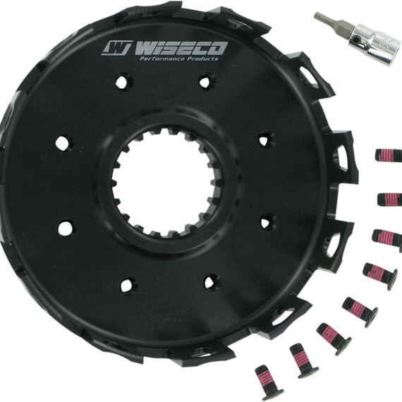 Caracteristicas: Forged from lightweight aerospace-grade aluminum alloy; CNC machining ensures each clutch basket is identical to the next Weight-saving relief cuts on outside of clutch reduce rotational mass, allowing engine to rev quicker Large oiling holes increase lubrication and reduce heat buildup PTFE coating makes for a near-frictionless surface Come with fasteners complete with pre-applied thread locker