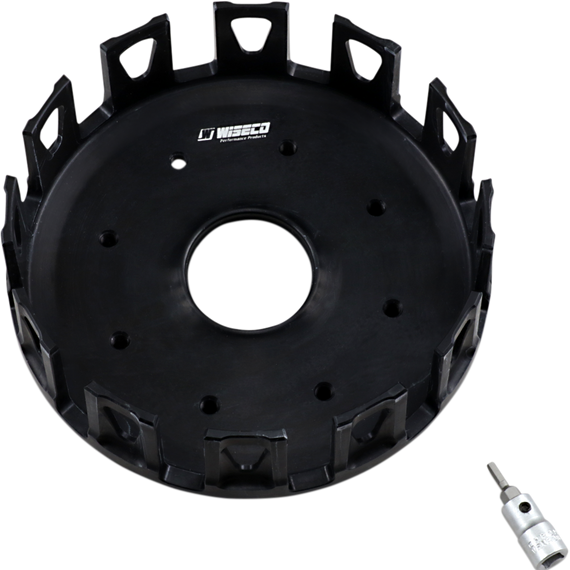 Caracteristicas: Forged from lightweight aerospace-grade aluminum alloy; CNC machining ensures each clutch basket is identical to the next Weight-saving relief cuts on outside of clutch reduce rotational mass, allowing engine to rev quicker Large oiling holes increase lubrication and reduce heat buildup PTFE coating makes for a near-frictionless surface Come with fasteners complete with pre-applied thread locker