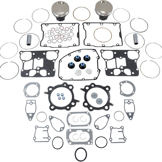 Caracteristicas: Forged from high-silicon aluminum alloy for maximum strength and dependability Contain all the necessary components for overboring or rebuilding your top end Feature forged pistons, rings, wrist pins, circlips, and top end gasket Cylinder sleeves must be purchased separately