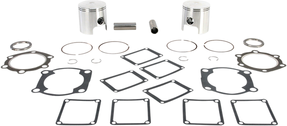 Caracteristicas: Most Wiseco 2-cycle pistons are forged from high-silicone bar stock Greater strength and lower expansion at high temperatures Complete piston kits include High-Performance forged pistons, rings, wrist pins, circlips and top-end gasket kit for one complete engine All Wiseco High-Performance pistons are priced with rings, wrist pins and circlips Wiseco ring types are not interchangeable (i.e., CD is not interchangeable with LC) and fit only Wiseco pistons WARNING: Wiseco pistons can be fitted only with Wiseco rings.